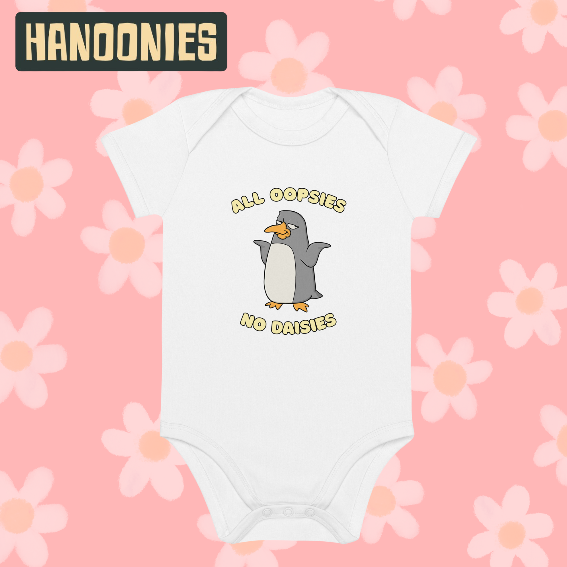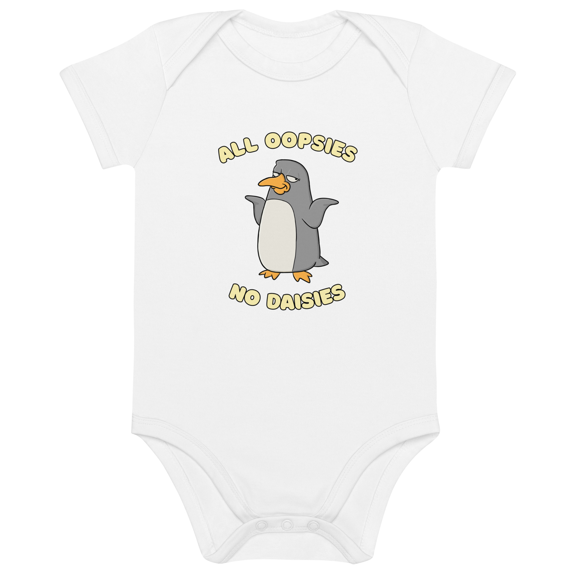 Because life with a baby is just one adorable accident after another! Featuring Finn the penguin in his signature shrug, this bodysuit is perfect for little ones who are all about the oopsies. Made from 100% certified organic cotton, it’s gentle on delicate skin while keeping your tiny mischief-maker comfy.